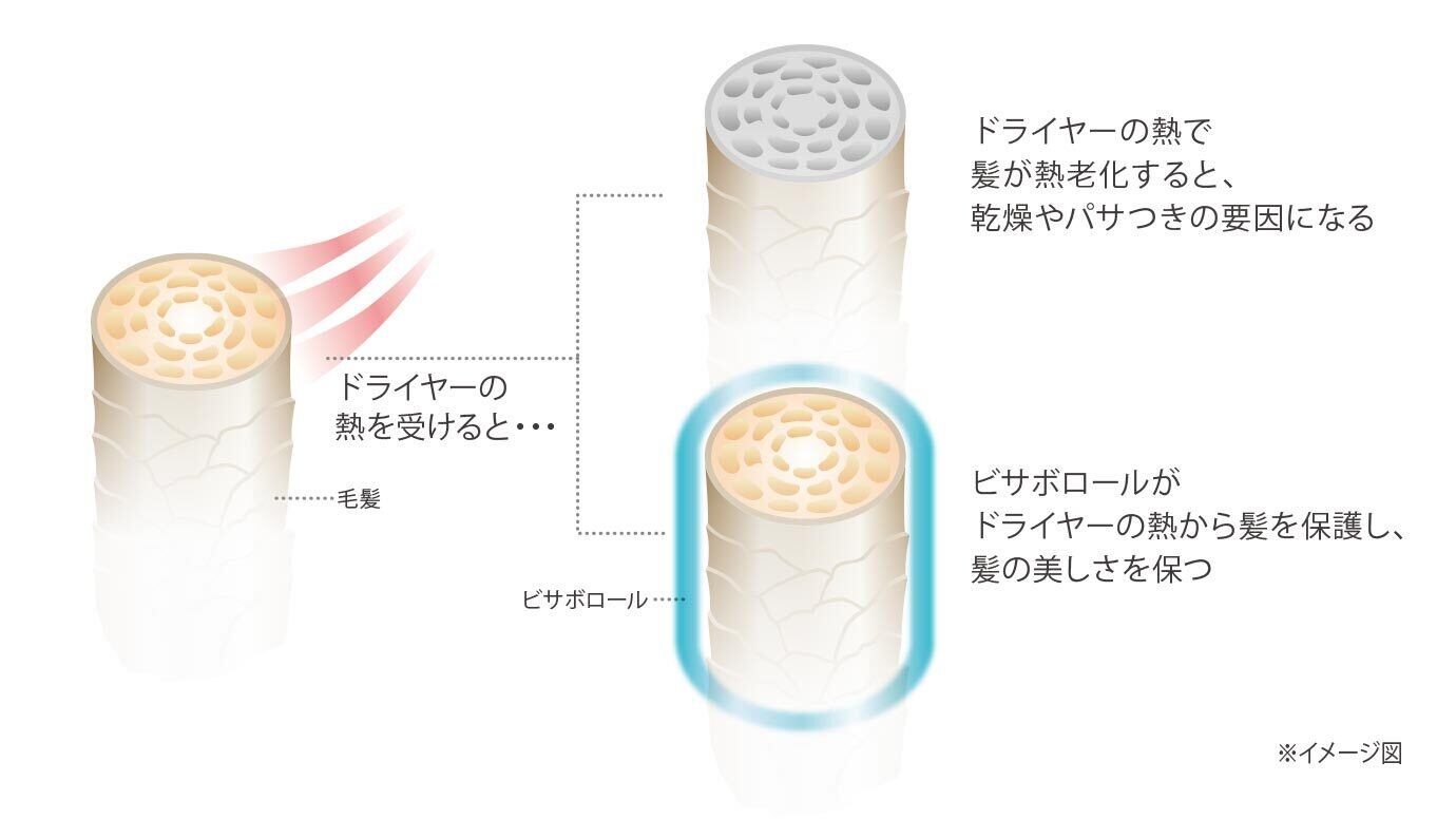 ドライヤーの熱から髪を守るビサボロール